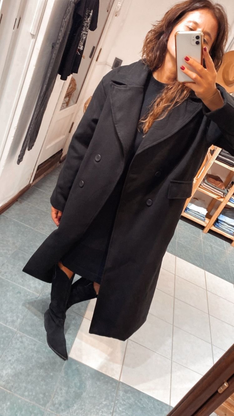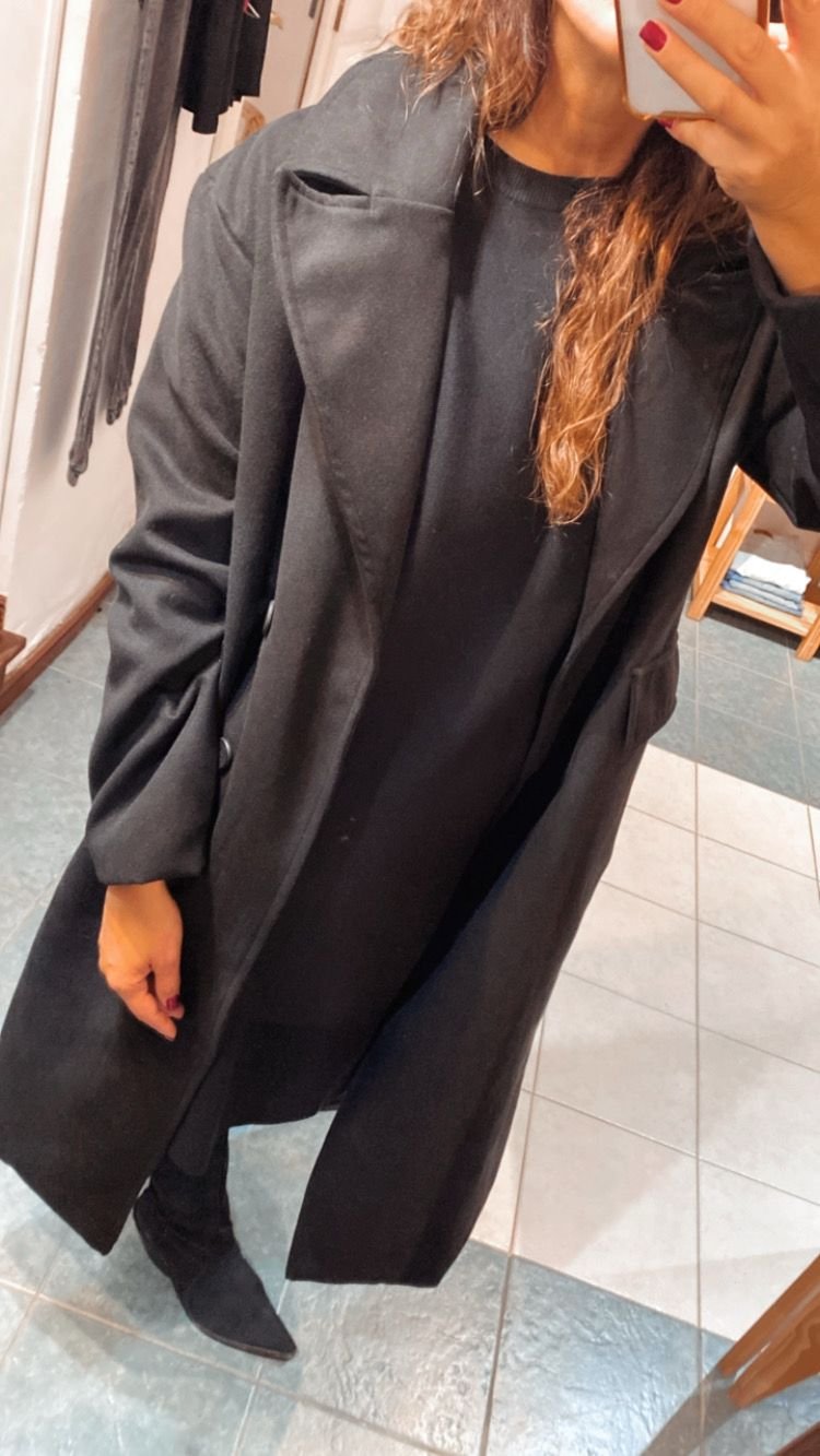 Tapado de paño con bolsillos laterales. Interior forrado con tafeta.